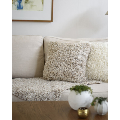 Lumme sand är ett beige konstgjort fårskinn, här som en kudde. Dess faux fur är smålockig och mycket likt ett äkta fårskinn. Placera kudden på sängen eller i soffan, där du vill ha in lite värme och naturkänsla. Matcha med någon av Lummes konstgjorda fårskinn för en extra mysig och trivsam miljö. Här är Lumme i färgen sand.
