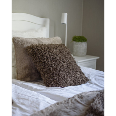 Wooly brown är en varmt brun kudde i en mjuk faux fur som påminner om en äkta fårskinnkudde. Pälsimitationen inger en mysig och varm skandinavisk känsla. Dekorera din säng eller soffa med denna extra gosiga inredningsdetalj. Här är kudden Wooly i färgen brown.